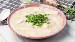 Autentisk opskrift på kinesisk congee rissuppe med kylling