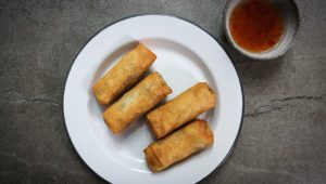 Sprøde forårsruller opskrift med svinekød, glasnudler og svampe