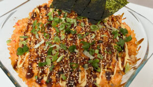 Nem og lækker Sushi Bake opskrift – cremet bagt sushi med laks og surimi Sushi bake er det perfekte...