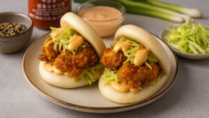 Bao med sprød kylling og chili-mayo – Nem opskrift med bao boller