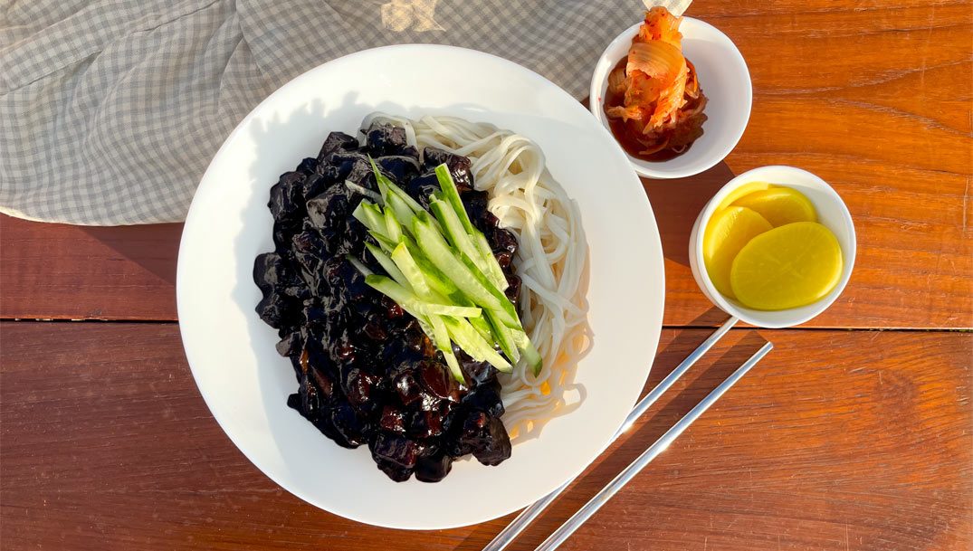Jjajangmyeon er en lækker og velsmagende koreansk ret, der har sit ophav i det nordøstlige Kina, og som er kendt for sin rige, fyldige smag, og sin bemærkelsesværdige kulsorte sauce. Retten består af en tyk bønnepastasauce, grøntsager og kød, og den serveres gerne rygende varm over en portion nudler og med et spejlæg, friske agurkeskiver eller lidt ærter ved siden af.