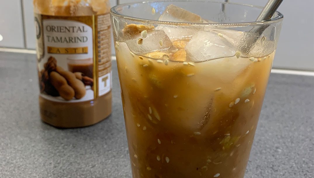 - Fyld et glas helt op med isterninger. Tilføj 2 spsk af tamarindmassen og tilføj lidt vand til den ønskede konsistens. Drys med peanuts og rør det rundt. Spis, drik og sip! Tamarindmassen opbevares i køleskabet i op til 2 måneder.