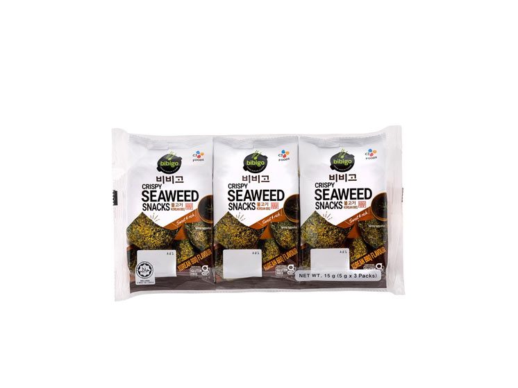 Tang( 56%) vegetabilsk olie(majs, SESAM) grillkrydderier(5%) (malttodextrin, sukker, salt, SOJApulver(SOJAbønner, maltodextrin, salt)glukose, gærekstrakt, lægpulver, smagsforstærker; E627, E631,syre E330) Allergener: kan indeholde: SENNEP. Bemærkning: indeholder en lille pose med iltabsorber, som ikke er egnet til indtagelse. Dette produkt er naturligt meget rig på jod. Overdreven jodindtag kan være sundhedsskadeligt og føre til forstyrrelser i skjoldbruskkirtelfunktionen og jodsstofskifte. Indtag derfor maksimal 5 g. sprød tang snack(dvs. en pakke om dagen)Næringsdeklaration: