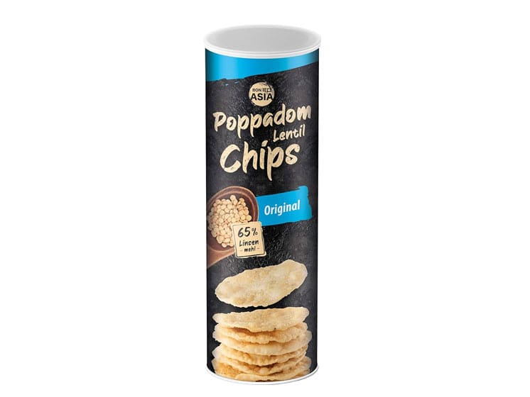 Poppadums er traditionelt en del af det indiske køkken, men denne variant er færdiglavede chips, klar til at spise.