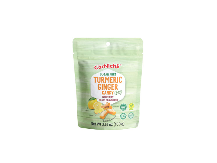 Oplev en harmonisk blanding af ingefær og gurkemeje med en forfriskende citronsmag i CorNiche Turmeric Lemon Ginger Candy.