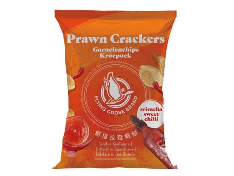 Flying Goose Prawn Crackers Sweet Chilli er sprøde rejechips med et sødt og krydret twist. Den klassiske asiatiske snack får her ekstra smag fra en sød chilimarinade, der giver en perfekt balance mellem knas, sødme og mild styrke.