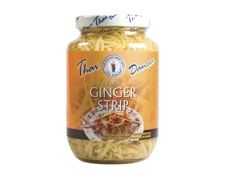Ingefærstrimler bruges almindeligvis i en række forskellige retter, især i det asiatiske køkken. Nogle populære retter, der bruger ingefærstrimler, omfatter: