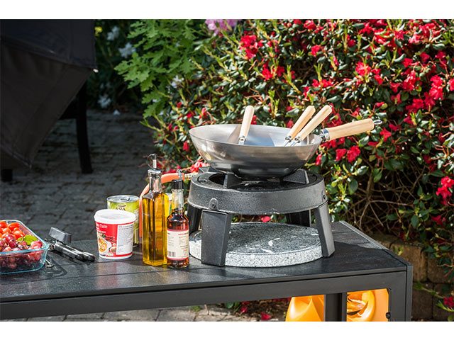 Den stabile konstruktion sikrer, at store wokpander og gryder står solidt uden risiko for væltning.