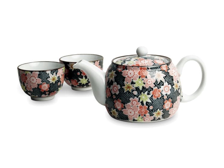 Dette smukke te-sæt kombinerer funktionalitet og traditionel japansk æstetik i én harmonisk helhed. Sættet består af en tepotte på 600 ml samt to matchende kopper – alle dekoreret med elegante kirsebærblomster på en mørk baggrund, der giver et eksklusivt og sofistikeret udtryk.