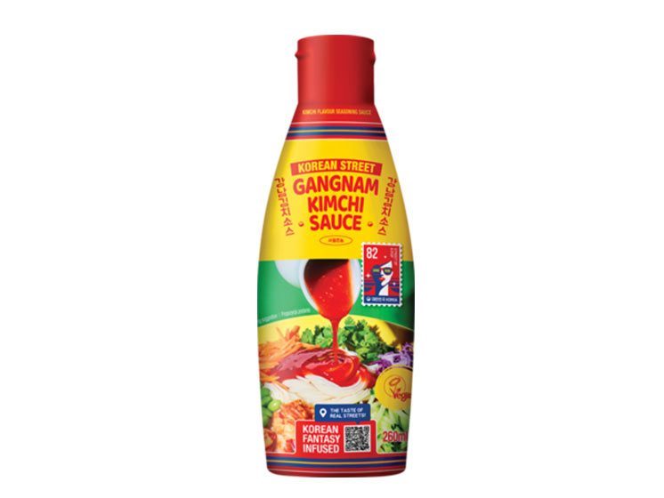 Fructosesirup, Kimchi kinakål tilberedning 20% (kinakål, radise, chilipulver, salt, hvidløg, løg, kinesisk forårsløg, radisejuice, ingefær, tørrede chili), hvidløg, vand, sukker, salt, krydderier (vand, dextriner) , salt, tangpulver, favoriseringsforstærker: E635: surhedsregulerende middel: E331, gærekstrakt), æblemos (æbler, antioxidant: E300), glukosesirup, chilipulver, æbleeddike, gærekstrakter, vegetabilske ekstrakter (løg, hvidløg, radise) , forårsløg, dextriner, syreregulator: E270, fortykningsmiddel: E415, ingefærekstrakter, farve: E160c, emulgator E418, Nashi pærejuiceekstrakt, hvidløgsekstrakt. Ma indeholder SOYA,MÆLK, VALDNØDDERM SELLERI, SENNET og SESAMNæringsdeklaration: