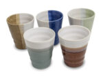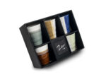 Hvert krus har en diameter på 8,5 cm og en højde på 9,5 cm – ideelt til te, kaffe, matcha eller varme drikke i det hele taget. Glasuren på krusene varierer i farvetone fra jordnære brunlige nuancer til kølige blå og grønne strøg, hvilket gør hver servering til noget særligt.