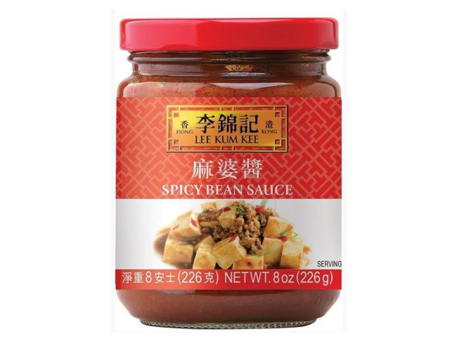 Vand, fermenteret SOJAbønnepasta 23% (vand, salt, SOJAbønner 12%, HVEDEmel), saltet chili 17% (chili 80%, salt), sukker, tomatpasta, SESAMolie, SOJAsauce (vand, salt, SOJAbønner, HVEDEmel), malede sesamfrø, sichuan peber, modificeret majsstivelse, dehydreret hvidløg, surhedsregulerende middel: mælkesyreNæringsdeklaration: