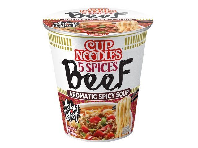 Nudler 80,3 % (HVEDEmel, palmeolie, salt, smagsforstærker: E621, melbehandlingsmidler: E500, E451, antioxidant: E306, surhedsregulerende middel: E330), tekstureret HVEDEprotein (HVEDEGLUTEN, BYGMALT ekstrakt), sukker, maltodextrin, salt, smagsforstærkere: E621, E627, E631, rød peberfrugt, smagsprøvepræparatblanding 1,0 %, aromastoffer (indeholder HVEDE, SOJA), SOJAsovspulver (SOJA, salt, maltodextrin), modificeret stivelse, chilipulver, MÆLKeprotein, SOJAbønner, HVEDE, gærekstrakt, flødepulver (glukosesirup, palmeolie, MÆLKeprotein), hydrolyseret majsprotein, farver: E150c, E160c, antiklumpningsmiddel: E551, surhedsregulerende midler: E330, E363, oksekødsekstraktpulver 0,02 % (salt, maltodextrin, oksekødsekstrakt).Allergener: