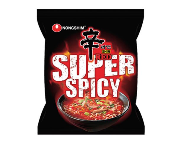 Ingredienser: Nudler: HVEDEMEL, palmeolie, kartoffelstivelse, salt, surhedsregulator: E501, E500, E339, tocopherolvæske (antioxydant: E306, emuldifier: E322 (indeholder SOJA)), krydderier (gærekstrakt, SOJA-sauce, hvidløg, HVEDE-stivelse), grønn teekstrakt (oligosaccharid, te-catechin, syre: E330). Farve: E101. Suppepulver: krydderier (hydrolyseret vegetabilsk protein (SOJA, HVEDE, majs), gærekstrakt, sukker, salt)), salt, krydderier (maltodextrin, chili peber, sort peber, hvidløg), sukker, glukose, tapioca stivelse, smagsforstærkere: E631, E627, svamp. Flager: grøn løg, svamp, gulerod, chili peber.