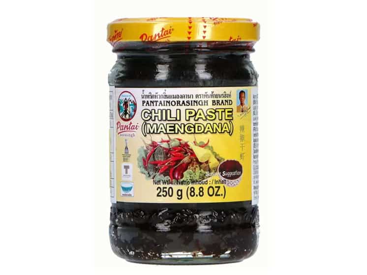 Pantai Chili Paste Maengdana er en klassisk thailandsk chilipasta lavet med tørrede chilier, rejer, hvidløg og krydderier. Pastaen bruges som base i mange thailandske retter og tilføjer dybde, sødme og varme.