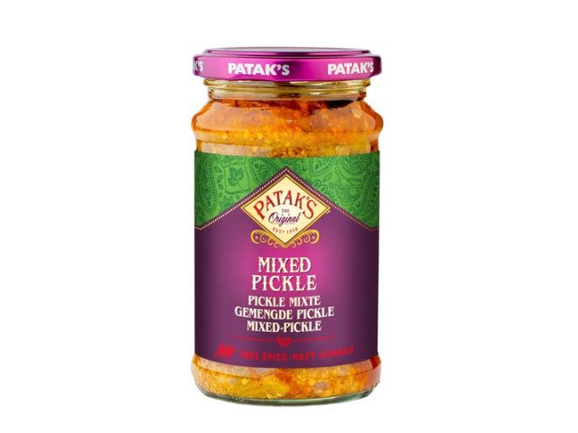 Frugt 30%(mango 22%) grønsager (33%)(gulerødder(23%), grønne chilli(9%) rapsolie, salt, syre E260, krydderier, fennikelfrø, SENNEPspulver, knust SENNEPsfrø, ajwainfrø, bukkehornsfrø, spidskommen frø, sorte calonjifrø. Allergener: Produktet kan indeholde JORDNØDDER OG NØDDER.Opbevaring: Køligt og tørt ved stuetemperatur . Brug indenfor 6 måneder efter åbning og bedst før datoNæringsdeklaration: