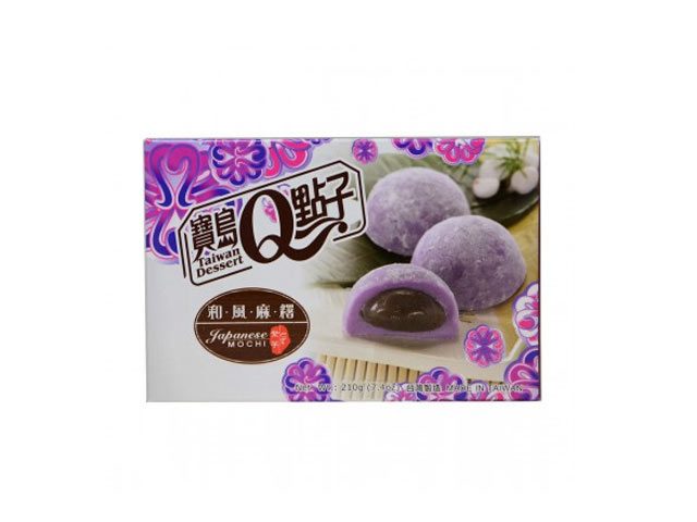 Maltose 25%, klæbrig ris 24%, sværdbønnepasta 22 (sværdbønner (66,7%), sukker), sukker, lilla ris, lilla sød kartoffel, fortykningsmiddel (E1442), palmeolie, aroma, konserveringsmiddel (E200) Kan indeholde spor af gluten, jordnødder, sesam, soja og nødderNæringsdeklaration:
