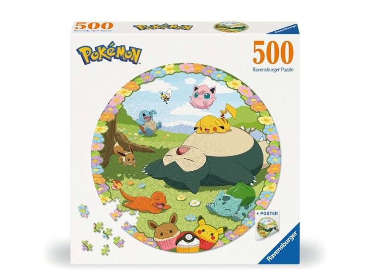 Dette puslespil fra Ravensburger består af 500 brikker og viser et blomstrende motiv med elskede figurer fra Pokémon-universet – herunder Pikachu og venner i rolige, naturinspirerede omgivelser.