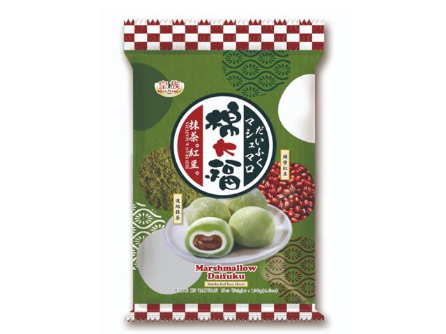Maltose, sukker, glødende ris (17,55%), fortykningsmiddel (E1442), trehalose, rødbønnepasta (9%) (rødbønne, sukker, maltose, sojabønneolie ), gelatin (oksekød), grøn te-pulver (0,82%), Palmeolie, aromastoffer, emulgator (E471), konserveringsmiddel (E202)Næringsdeklaration: