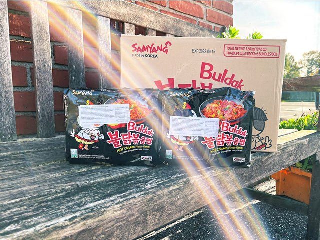 Hvordan opbevares en hel kasse Samyang Hot Chicken Flavor Ramen bedst?