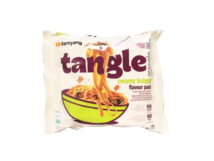 Samyang Tangle Creamy Bulgogi Pasta er en lækker fusion mellem koreansk bulgogi-smag og cremet pastasauce. Denne instant noodle-ret adskiller sig fra de klassiske Samyang-nudler ved sin silkebløde, fløjlsagtige sauce og en sødlig, umamirig smag inspireret af koreansk BBQ. Perfekt som hurtig frokost eller aftensmad, når du ønsker noget mættende og smagfuldt på rekordtid.