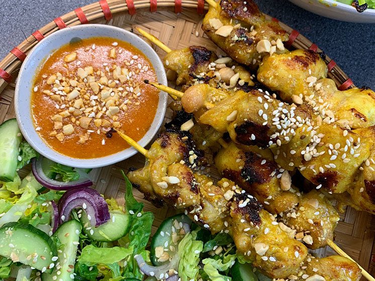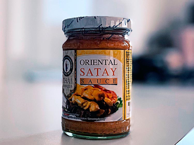 Satay, også kaldet sate, er en populær indonesisk ret i form af grillet kød på spyd. I dag er denne ret blevet meget populær i Sydøstasien og Europa. Traditionelt serveres satayspyd med jordnøddesauce. Denne lækre Thai Dancer Satay Sauce er fyldt med jordnødder, kokosmælk, galangal, tamarind, citrongræs og chili svarer til de thailandske spisevaner og kan serveres med grillet kød og skaldyr. Efter opvarmning kan du bruge den lækre Thai Dancer Satay Sauce som dipsauce til grillretter.