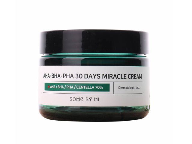-25%En creme, der indeholder centella asiatica for at styrke hudbarrieren. Some By Mi AHA BHA PHA 30 Days Miracle Cream er en ikke-fedtet og hurtigt absorberende beroligende creme, der hjælper med at styrke hudbarrieren. Formuleret med 70,78% centella asiatica ekstrakt, 10.000 ppm tea tree ekstrakter, madecassoside og 4 urter.