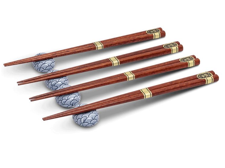 er skabt til dig, der elsker både æstetik og funktion, når du nyder dine yndlingsretter fra det asiatiske køkken. Sættet består af fire par spisepinde med det ikoniske japanske Seigaiha-bølgemønster – et symbol ro, stabilitet og elegance.