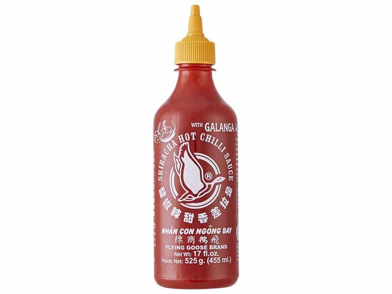 Chili 61%, sukker, galanga 10%, salt, vand, smagsforstærker: E621, stabilisator: E415, konserveringsmiddel: E202.Kan indeholde spor af soja og sennep.