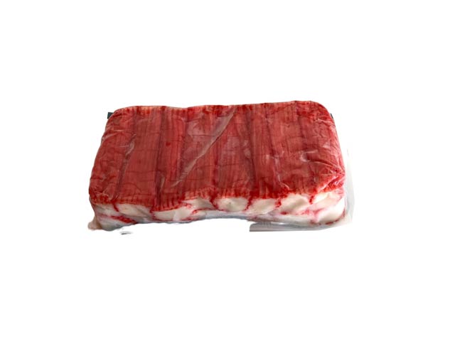 Ingrediensliste: Vand, surimi 33% (hvid FISK, sukker, stabilisator (E451, E450)), HVEDE-stivelse, modificeret tapiokastivelse, tapiokastivelse, sukker, salt, SOJAbønneolie, naturlig krabbeekstrakt (CRUSTACEANS), fugtighedsbevarende middel (E420, E422  ), ÆG hvidt pulver, smagsforstærker (E621, E640), stabilisator (E407, E451), farve (E120, E160c, E170)