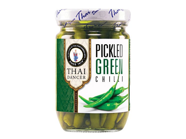 Thai Dancer Pickled Green Chili er en smagseksplosion, der bringer den autentiske thailandske smag til dit køkken.