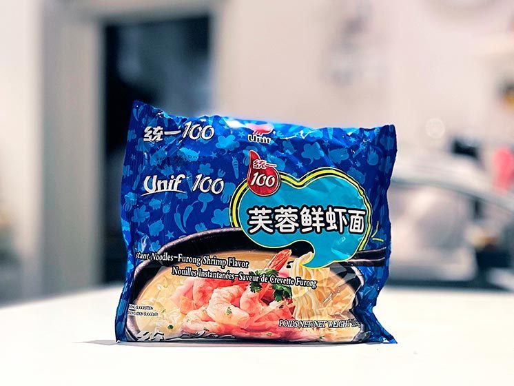 Nudler (83 g): HVEDEmel (60 %), palmeolie, tapiokastivelse, salt, smagsforstærkere: E621, E501, E500, E451, E452, fortykningsmiddel: E415, antioxidant: E307. Sauce (10 g): Salt, aroma (SOJA), gærekstrakt, sukker, glukose, maltodextrin, hvidløgspulver, ingefærpulver, smagsforstærker: E635, peber, chili, antiklumpningsmiddel: E551. Krydderi (9 g): Palmeolie, SESAMolie. Tørrede grøntsager (4 g): hvidkål, gulerod, forårsløg. Fremstillingsmetode: Hæld 500 ml kogende vand over, bland, dæk til og lad stå i 3 minutter. Rør rundt og servér.Næringsdeklaration: