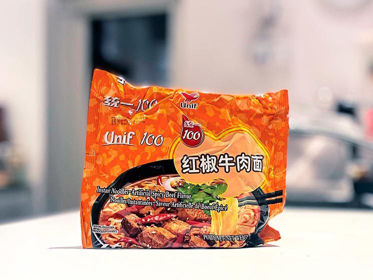 Nudler 73% HVEDEmel, raffineret palmeolie, tapiokastivelse, salt, smagsforstærker. (E621], surhedsregulerende middel. (E501, E500, E451, E452, E450), fortykningsmiddel. [E415), E-vitamin Sauce Raffineret palmeolie, , vand, spidskål, SESAMolie, chili, langerine pulver. Krydderipakke: Salt, gærekstrakt, sukker, løgpulver, hvidløgspulver, Sichuan peberpulver, smagsgiver HVEDE, SOJAbønner), fennikelpulver, smagsforstærker JE631, hvid peberpulver, ingefærpulver, mandarinpulver, antiklumpningsmiddel [E551) Tørret grøntsagspakke: Kål, gulerod, spidskålNæringsdeklaration: