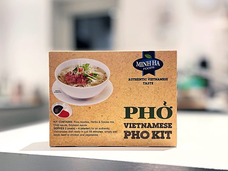 Læg nudlerne i individuelle serveringsskåle og top med bønnespirer, basilikumblade og blancheret oksekød af kogte kyllingeskiver. Bring fonden i kog igen og hæld den varme fond i hver skål. Pynt med hakket skalotteløg og koriander. Serveres varm med chili fiskesauce og sort sojasauce til ens præference