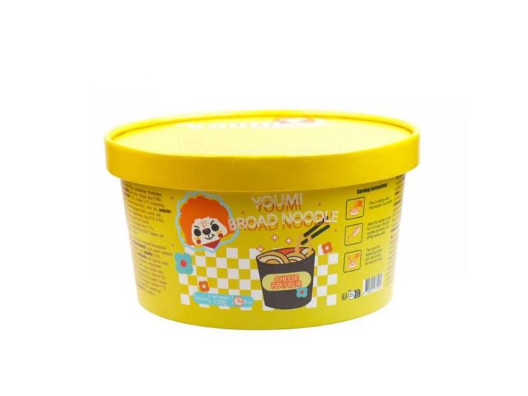Youmi Instant Broad Cup Noodle Say Cheeze er skabt til ostelskere og travle sjæle. Forkæl dig selv med brede nudler badet i en lækker ostesovs, der bringer smilene frem.