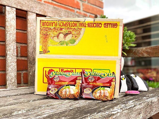 Denne kasse indeholder 30 individuelle pakker af de klassiske Yum Yum-nudler med smag af grillet kylling.