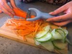 Der er ingen grund til at gøre det svært for sig selv, når der skal aftensmad på bordet eller serveres en let anretning til frokost. Med dette asiatiske juliennejern kan du på ingen tid forberede alverdens frugter og grøntsager i fine og tynde juliennestrimler, sådan at du både slipper for alt hakkearbejdet i køkkenet, såvel den opvask, der ofte følger med, og som ikke altid er lige kærkommen på de travle hverdage. Juliennejernet er ideelt til et hav af asiatiske salater, der består af fine strimler af grøntsager, eksempelvis en thailandsk papaja-salat, en vietnametisk mangosalat eller diverse friske nudelsalater-og retter. Jernet er desuden nemt at rengøre, da det tåler opvaskemaskine, men også hurtigt at rense med en smule vand og sæbe.